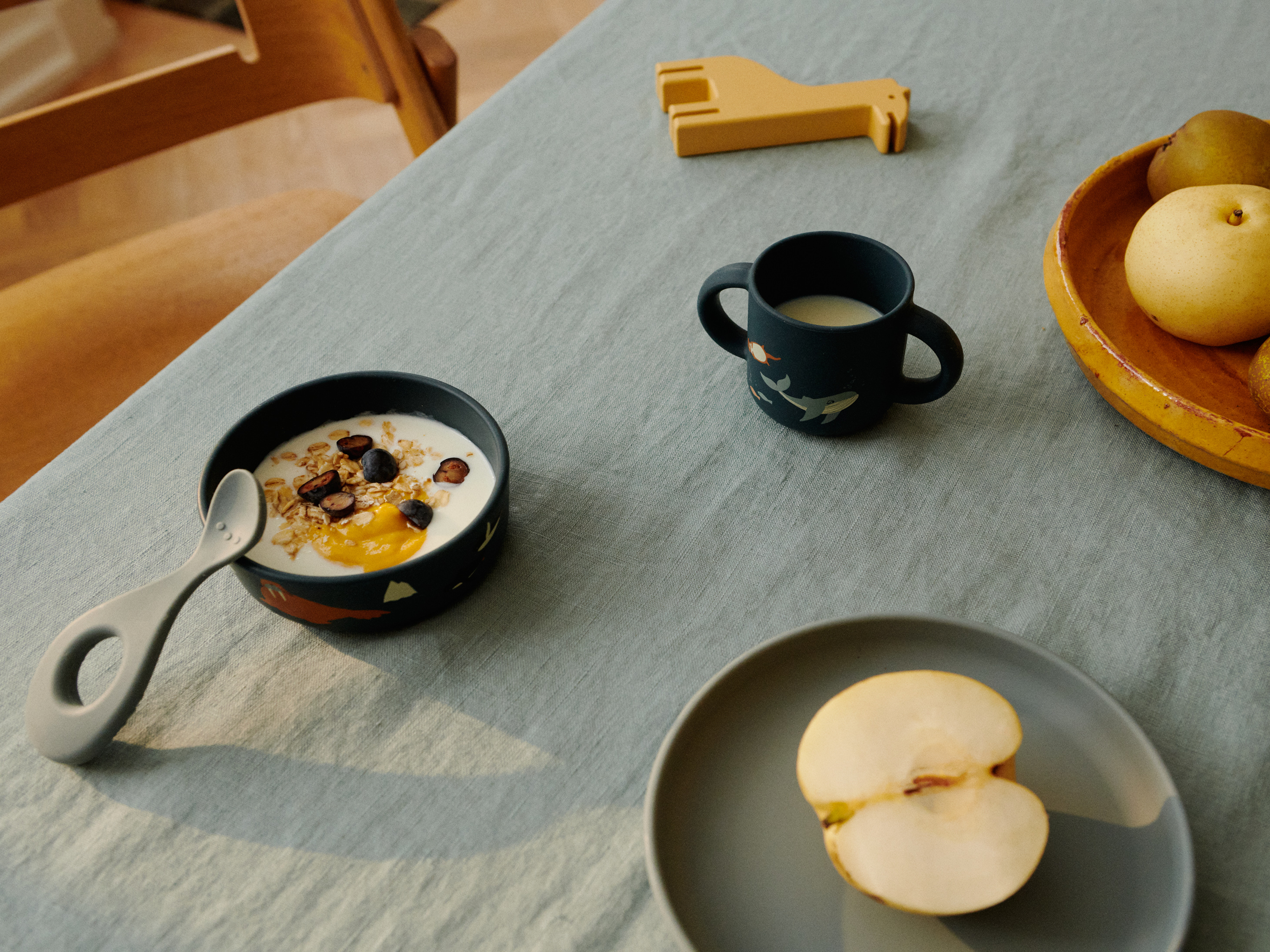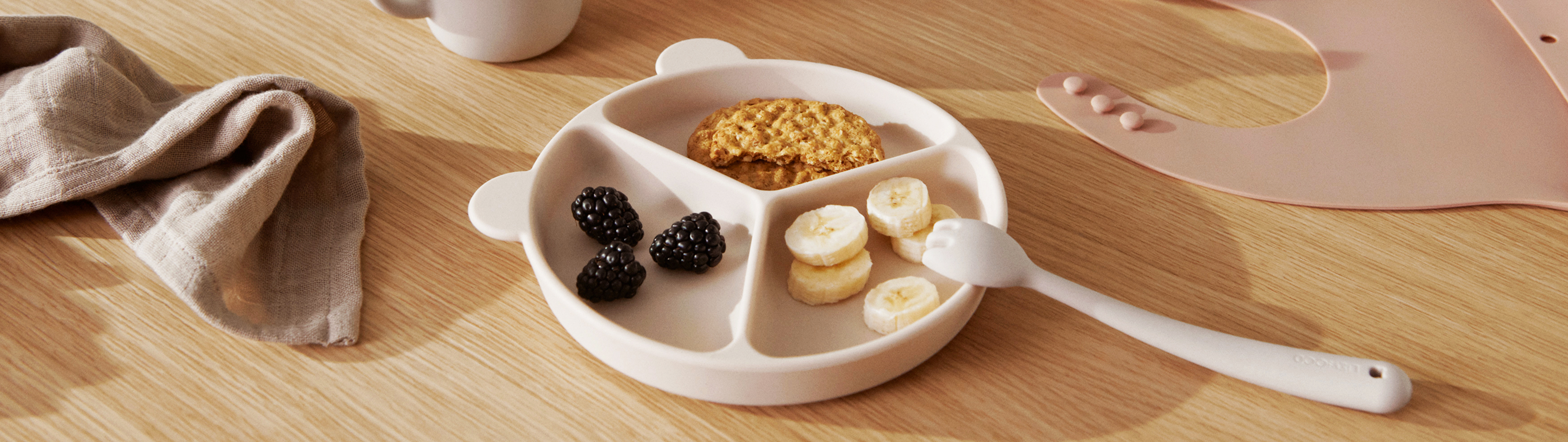 Wenn sich dein Baby der nächsten sensorischen Phase nähert, ist ein wenig Vorbereitung auf neue Mahlzeiten sehr hilfreich. Entdecke alles, was du für die ersten Mahlzeiten deines Babys brauchst – von praktischen Lätzchen und Tischsets bis hin zu weichem und sicherem Besteck und Geschirr.
