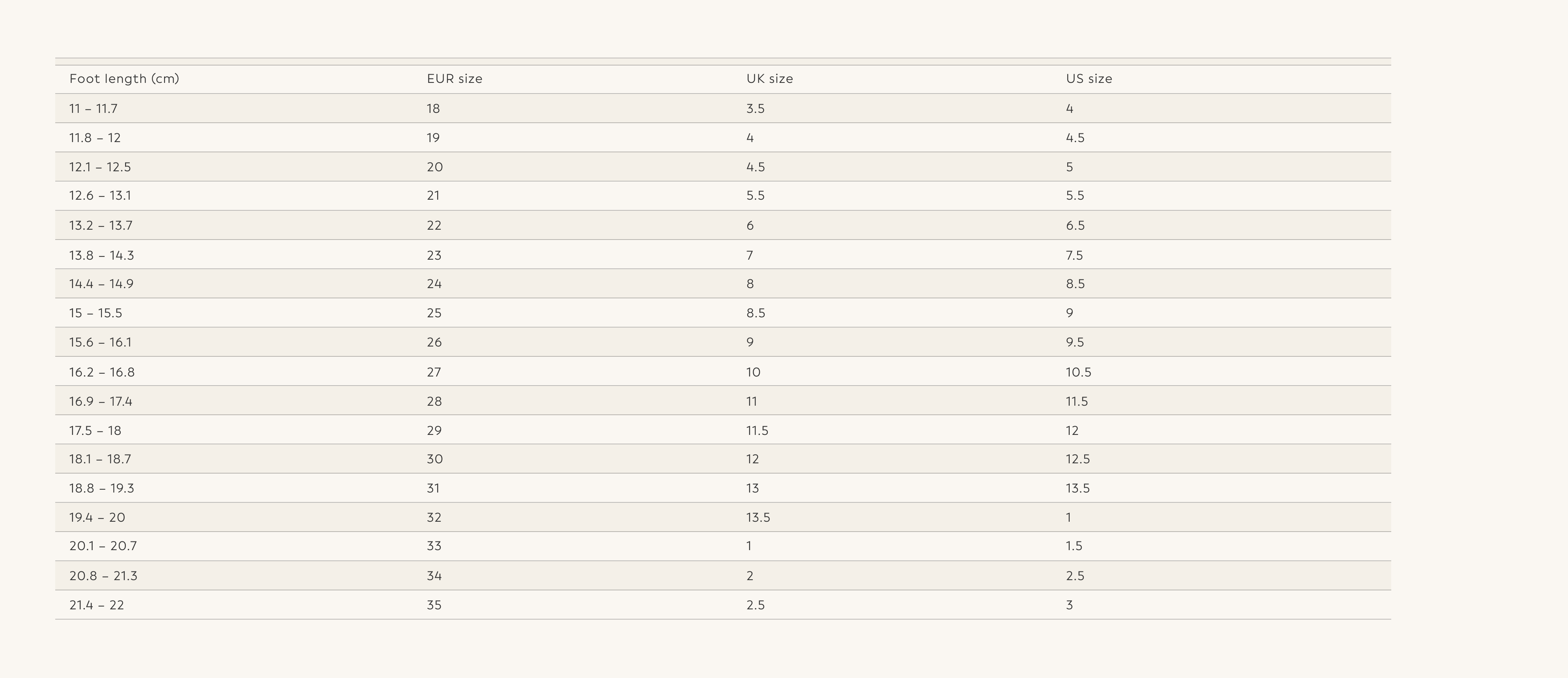 Die LIEWOOD-Größen von 18 bis 28 beinhalten bereits eine Wachstumsreserve von 1,5 cm (0,6 Zoll).
