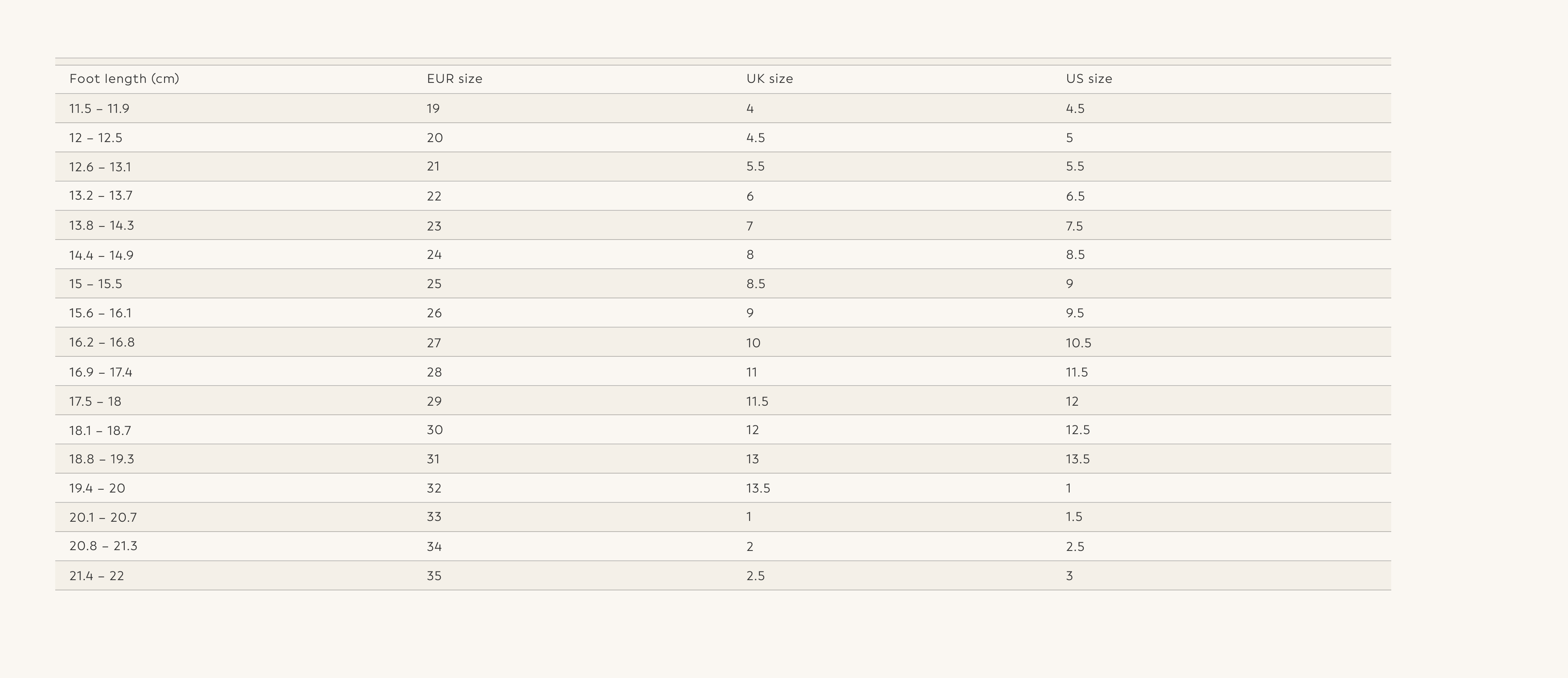Achte darauf, die richtige Größe zu wählen, wenn du Schuhe für dein Kind kaufst, indem du unserem einfachen Schritt-für-Schritt-Leitfaden folgst. Lerne, wie du die Füße deines Kindes genau misst und die passende Größe in unserer Größentabelle unten findest.