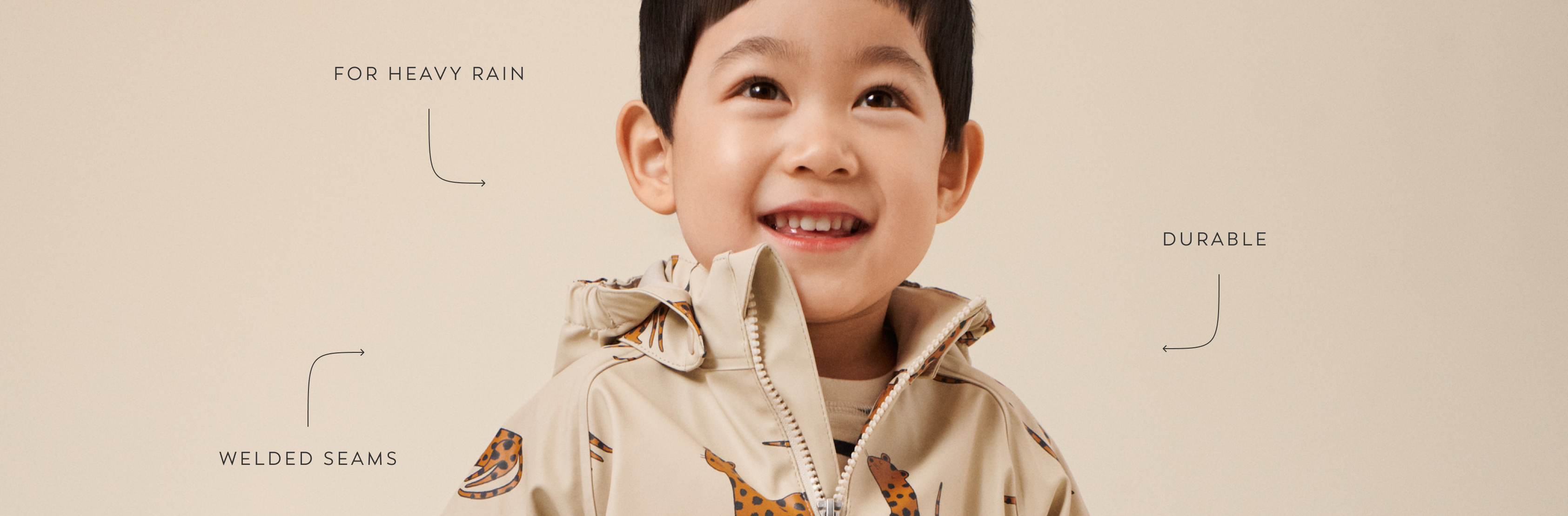 Um einem hohen Wasserdruck zu widerstehen, sind unsere PU-beschichteten Modelle mit wasser- und winddicht verschweißten Nähten ausgestattet, damit dein Kind auch bei starkem Regen geschützt ist.