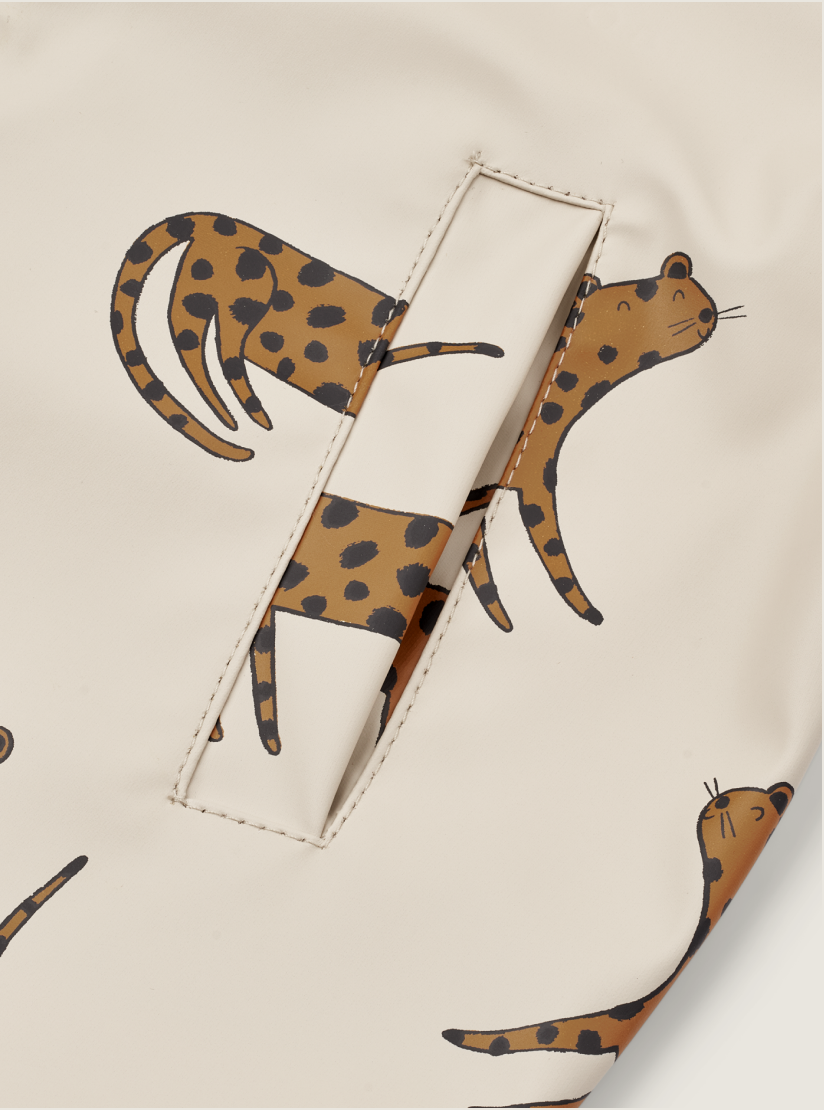 Mit einer Wasserdichtigkeit von über 10.000 mm sorgt die hochwertige und strapazierfähige PU-Beschichtung dafür, dass dein Kind auch in den nassesten Situationen trocken bleibt – selbst wenn es zwischendurch mal eine Pause in einer Pfütze einlegt.