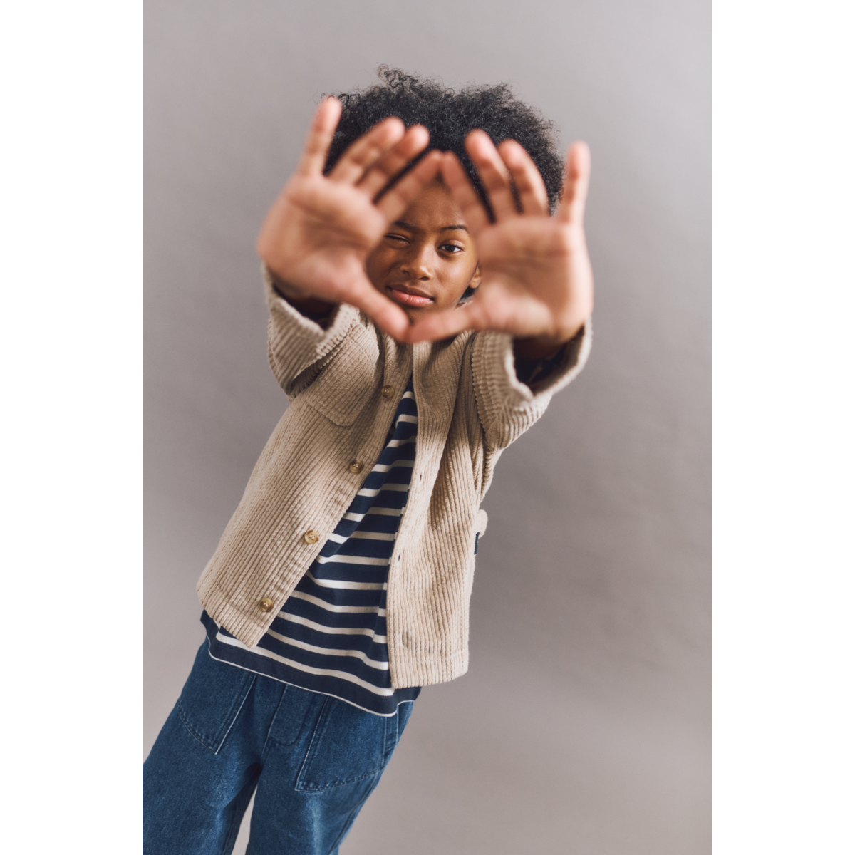 Cord-Überhemd für einen zeitlosen und vielseitigen Stil. Hergestellt aus edlem, weichem Stoff, mit asymmetrischen Taschen, Logo-Stickerei und einem Monogramm-Aufnäher.